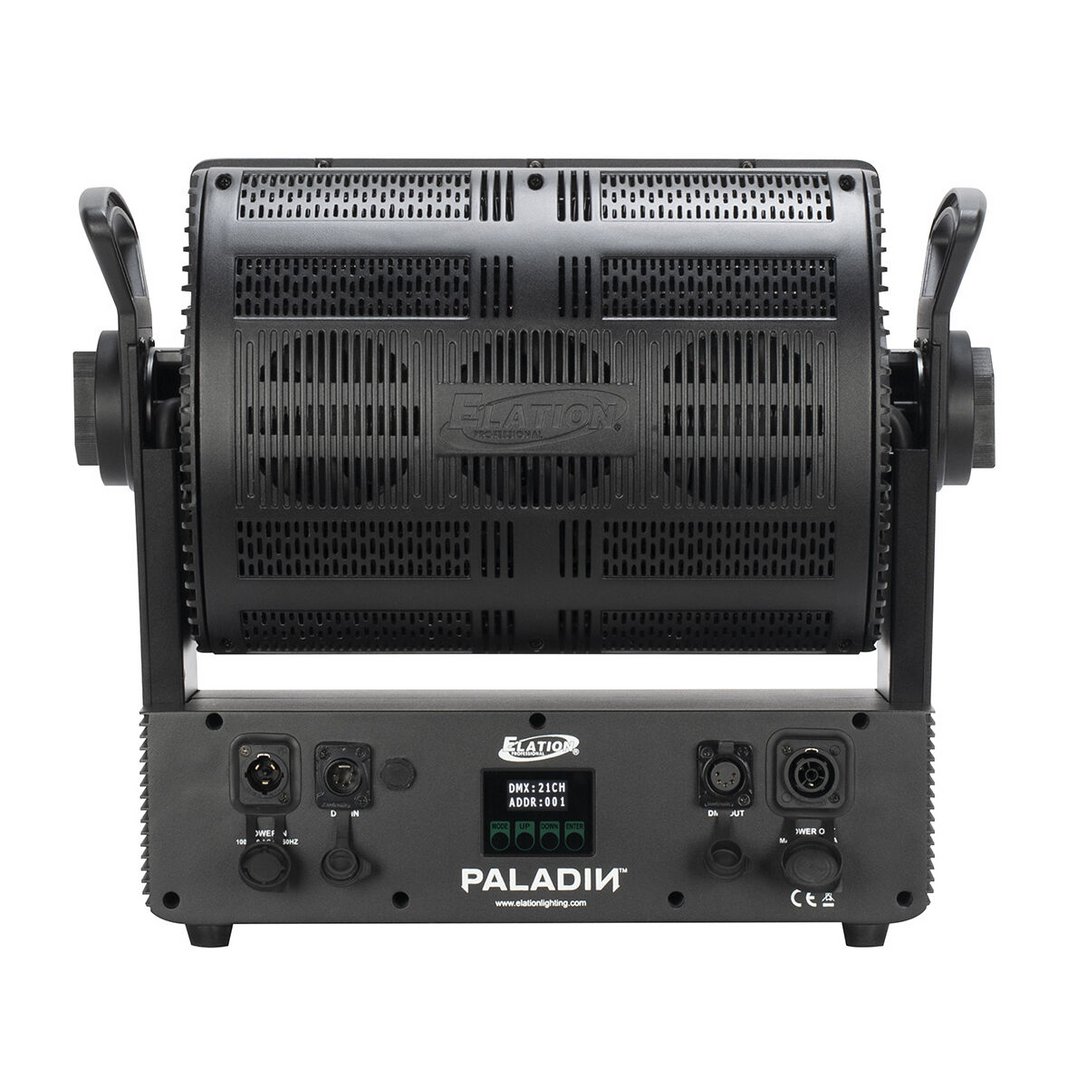 Der ELATION Paladin ist ein vielseitiges Hybrid-Gerät, das als leistungsstarkes Vollfarb-Stroboskop, lichtstarkes Washlight, kräftiger Blinder und auffälliges Effektlicht dient. Mit 24 x 40 Watt RGBW-LEDs, einem motorischen Zoom von 6° bis 32° und IP65-Zertifizierung bietet er intensive Farbeffekte und flexible Einsatzmöglichkeiten für verschiedene Anwendungen.