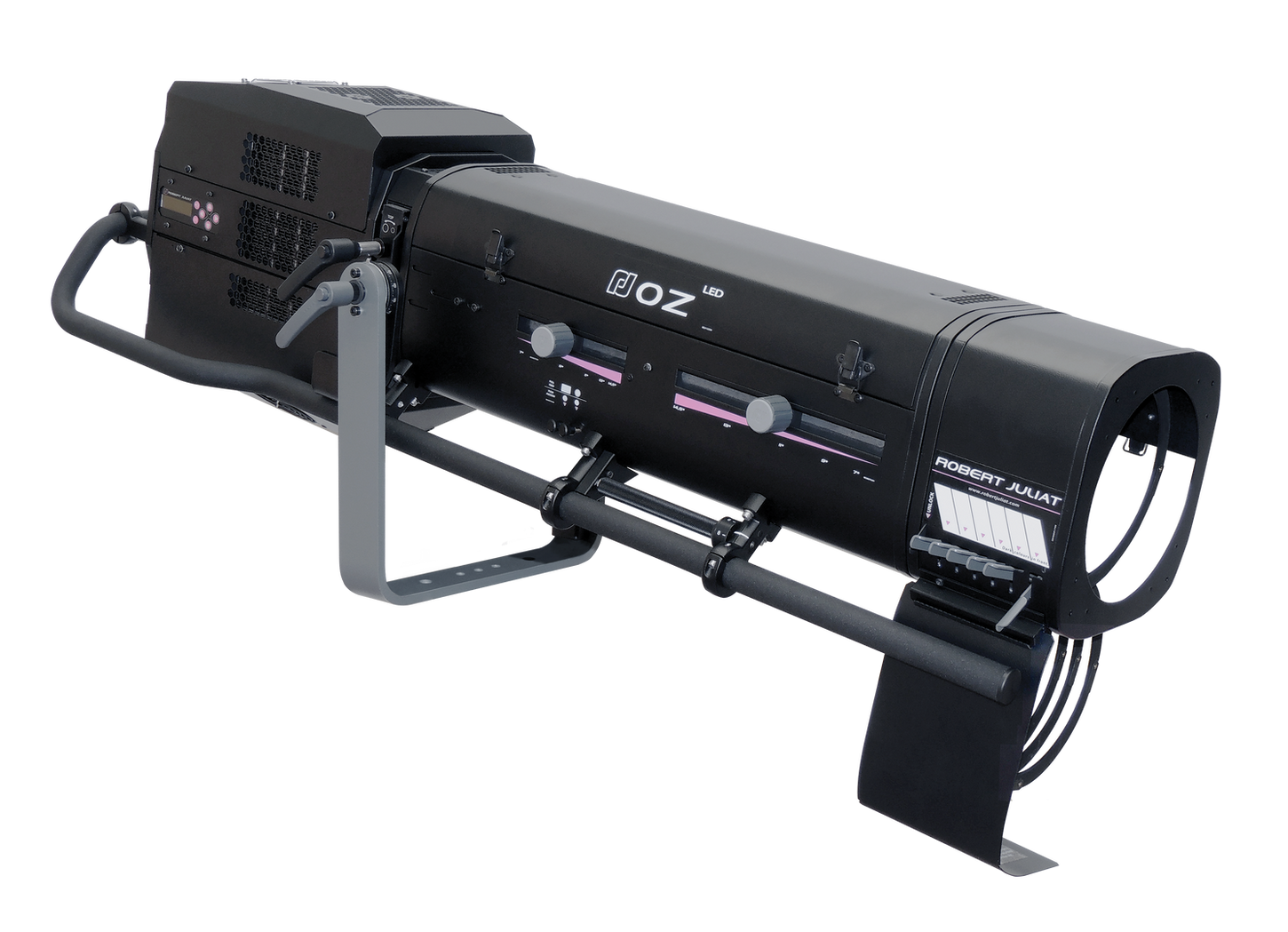 Der Robert Juliat Oz ist ein leistungsstarker 600W LED-Verfolger mit einem Abstrahlwinkel von 7° bis 14,5°, ideal für Entfernungen von 15m bis 40m. Er bietet geringe Wärmeentwicklung, hohe Energieeffizienz und ist für geräuschsensible Umgebungen geeignet. Ausgestattet mit einem elektronischen Dimmer, einem Farbwechslersystem für 6 Farben und einer Goboaufnahme, ermöglicht er eine ergonomische Bedienung.
